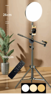 Foldable, height-adjustable (up to 2 m) tripod lets teachers and students quickly position the light for group presentations, individual recordings, or desk-level demos.